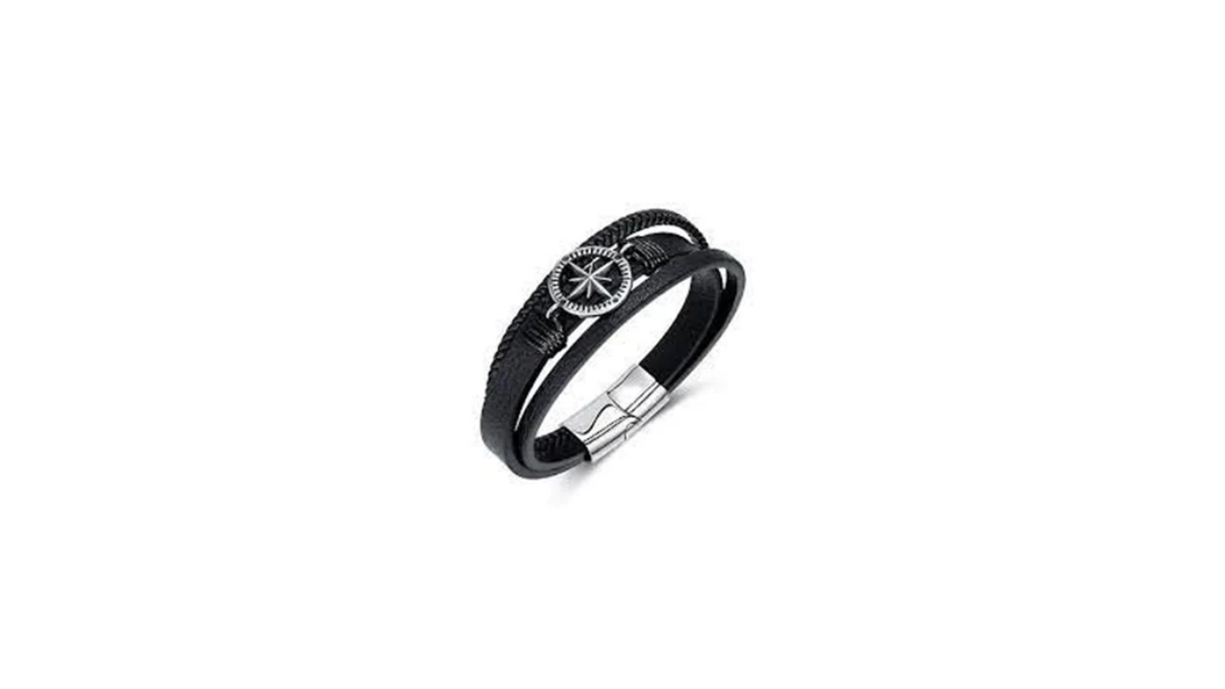 Black Leather Compass Bracelet – Find Your Way in Style This bracelet is crafted for explorers at heart. Made from premium black leather bands—both braided and smooth—it offers a rich texture and bold presence.